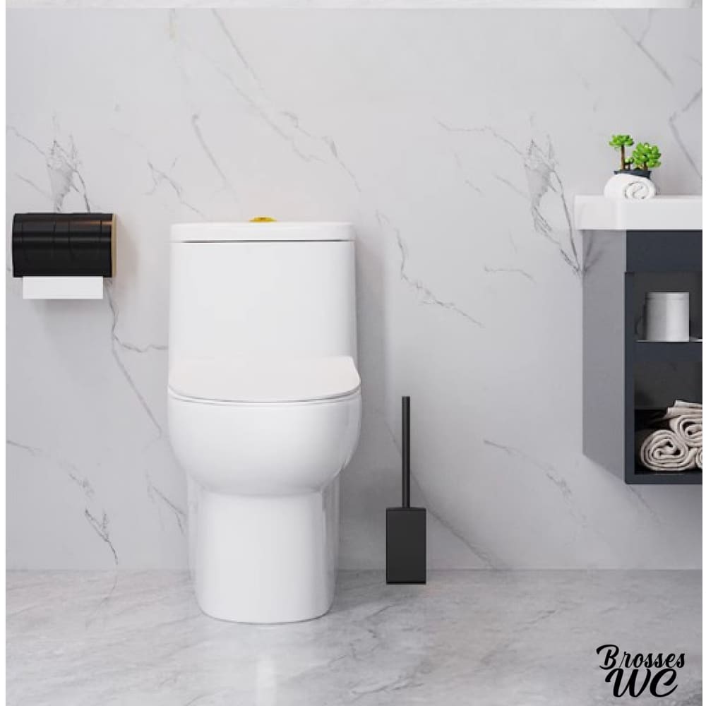 - Brosse WC ronde : Poils noirs souples et denses pour un nettoyage efficace, même dans les recoins difficiles.