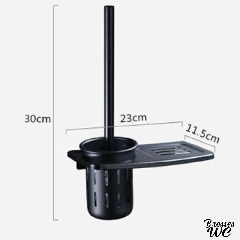 La brosse WC "Urban Black" séduit par son design épuré et sa fonctionnalité intelligente. Son support mural en aluminium et son étagère pratique en font un objet à la fois décoratif et ultra-fonctionnel.