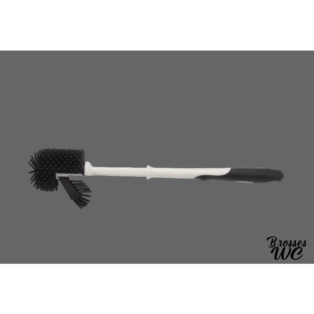 - Double tête innovante : Brosse demi-ronde en silicone gris pour un nettoyage efficace des surfaces. Goupillon intégré pour atteindre les zones difficiles et les contours de la cuvette.